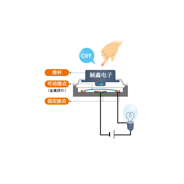 常規的輕觸開關的工作原理不是很難理解,可以看下面用一個動態圖展示其工作原理