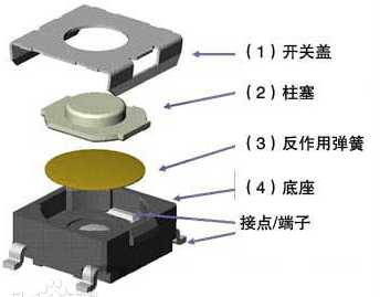 觸開關內部結構有基本的五個主體組成:1、上面的是開關蓋,有PPA塑料或者金屬;2、柱塞大多數是PPA;3、反作用彈簧片;4、底座(含接觸端子);通過結構可以知道,輕觸開關底座開裂,基本是以下幾種原因造成了: